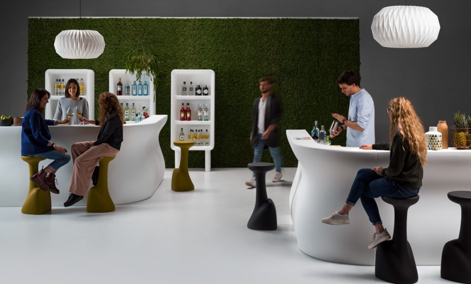 Facile da spostare, resistente agli urti, predisposto per un top di copertura, presenta 4 nicchie di stoccaggio, più 2 nicchie sul piano d’appoggio per l’utilizzo operativo. Abbinato all’elemento lineare svolge funzione di raccordo per infinite soluzioni dimensionali. Predisposto per alloggiare 1 kit luce standard o con luce RGB, utilizzato singolarmente o in coppia può dar vita ad avvolgenti reception illuminate.