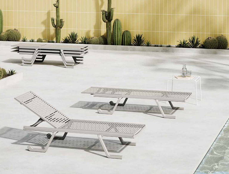 Le collezioni di lettini Doge e Podio rivoluzionano gli spazi outdoor con un design innovativo e contemporaneo. Realizzati in acciaio, alluminio e tecnopolimero, offrono leggerezza, maneggevolezza e grande resistenza grazie alla tecnologia high-end. Entrambi impilabili, sono dotati di schienale regolabile in 5 posizioni e di rotelline per un facile trasporto.