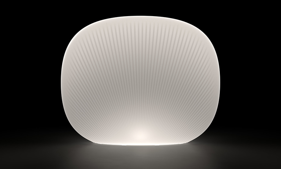 La silhouette sinuosa di Fade Shell si accende di una luce soffusa che rischiara le serate, un’opera d’arte luminosa, un gioco di equilibrio tra bellezza ed innovazione.