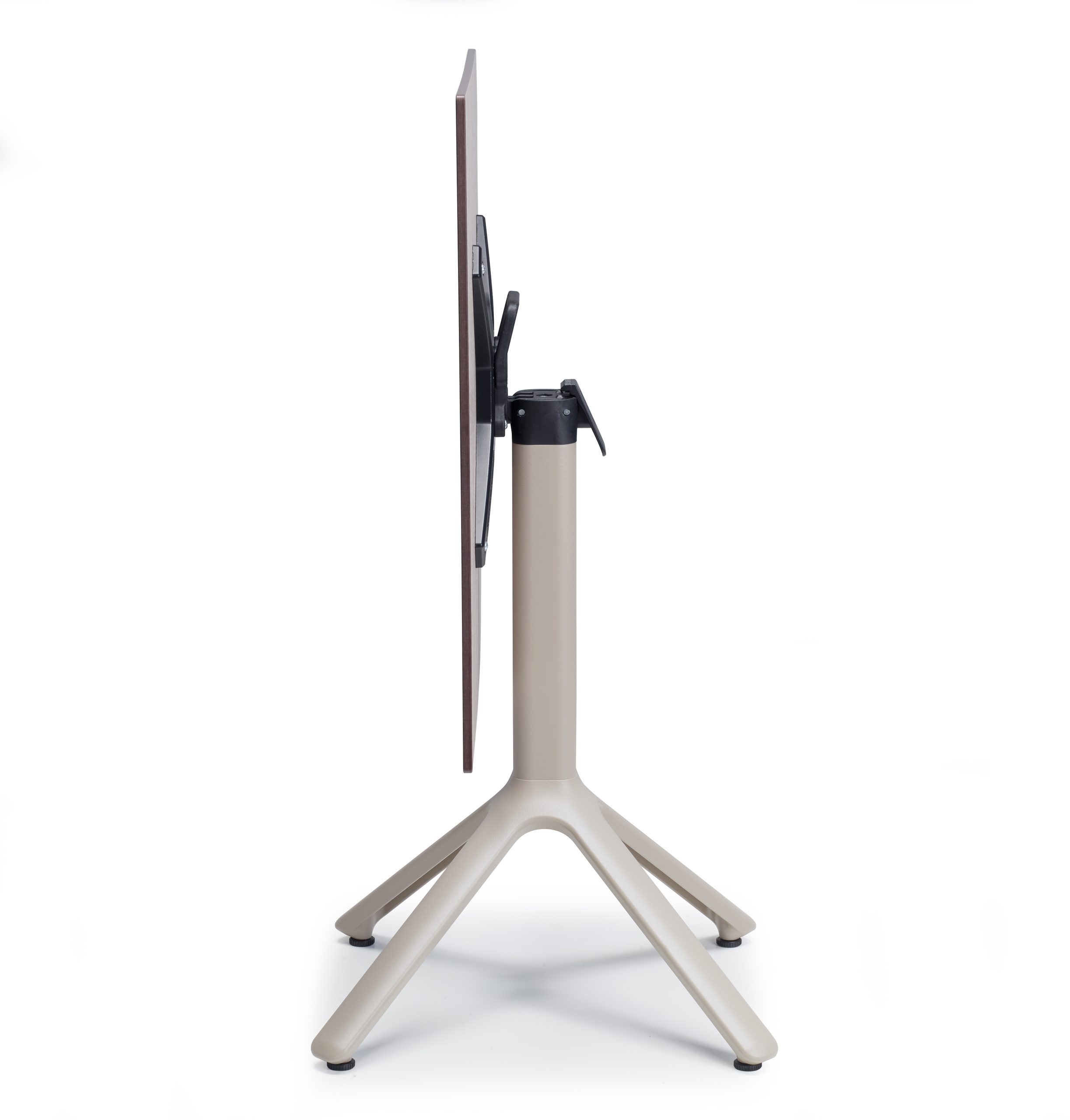 Grazie al movimento ribaltabile, l’allineamento di più tavoli è semplicissimo. Base a 4 piedi in alluminio pressofuso. Colonna quadrata in alluminio con angoli arrotondati. Staffe di fissaggio al piano in alluminio pressofuso. Movimento ribaltabile con maniglia per facilitare l’allineamento di più tavoli. Con 4 piedini regolatori. Per uso interno/esterno.