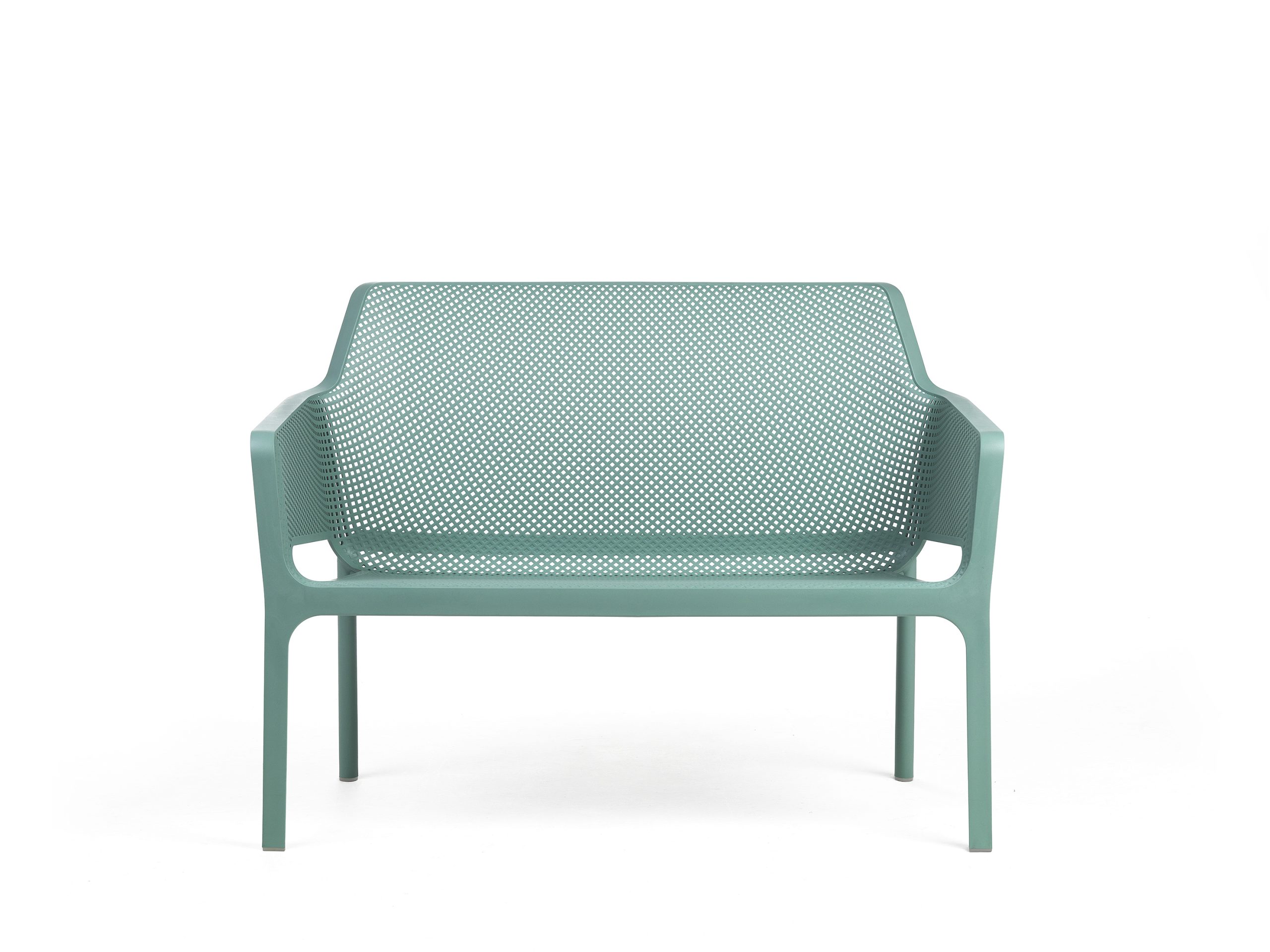 Romantica ed empatica, Net Bench è una panchina per esterni a due posti in resina fiberglass. Caratterizzata da un motivo a fori quadrati e raggiati, presenta linee pulite, profili sottili senza soluzione di continuità e un’ampia gamma di cuscini a corredo.