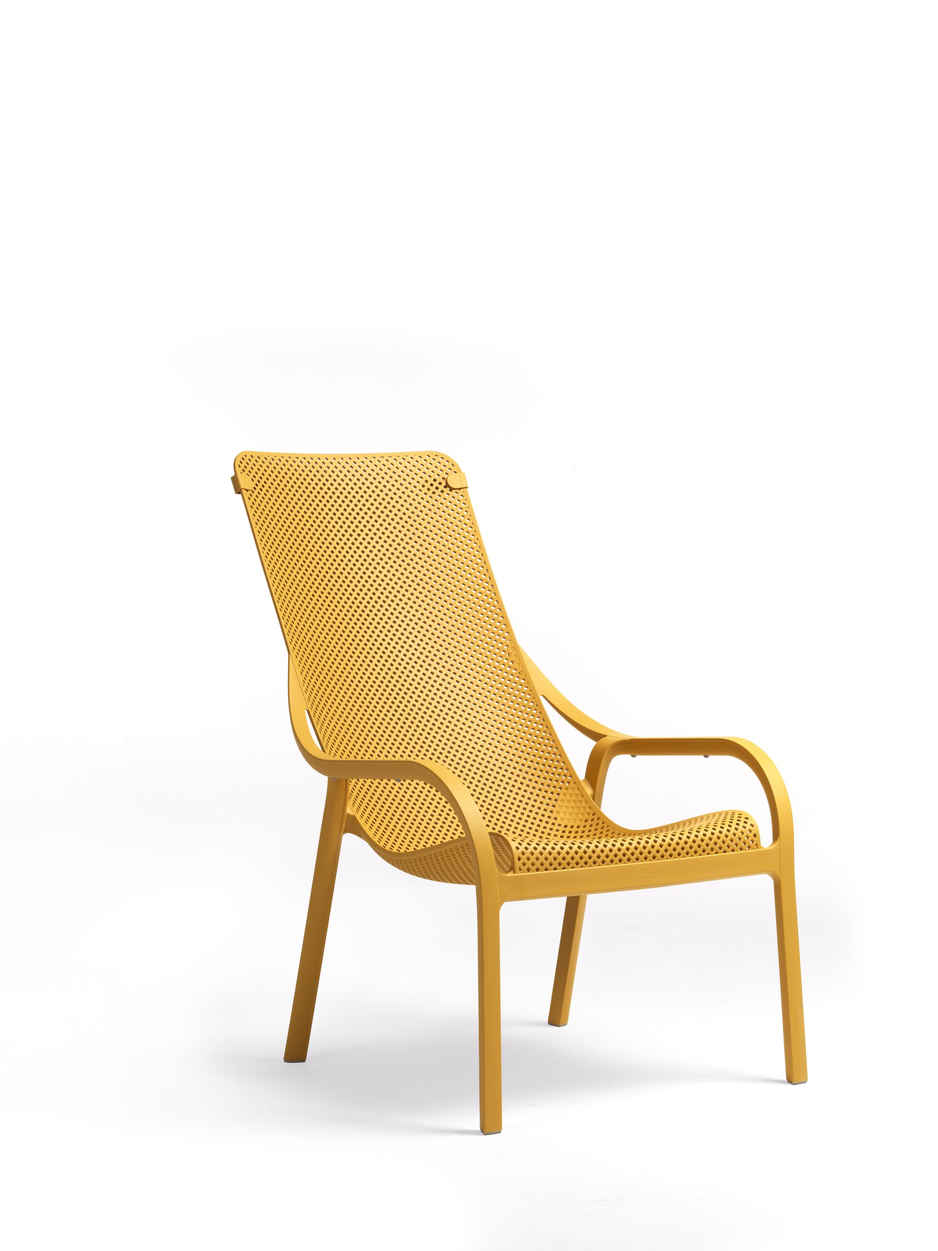 Trasmette la sensazione di benessere al solo guardarla. Poltrona outdoor in polipropilene fiberglass riciclabile, generosa e profonda nella seduta, avvolgente nella forma e con un sinuoso profilo che evoca un’onda