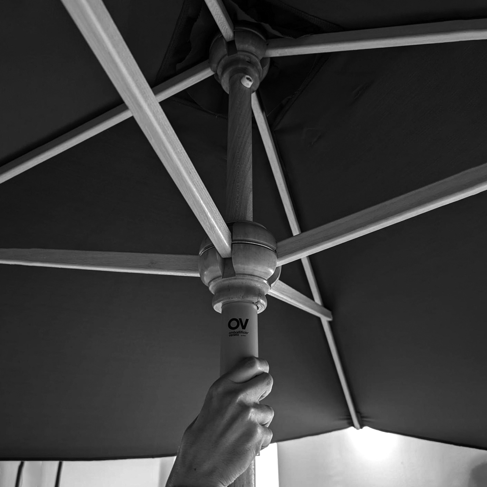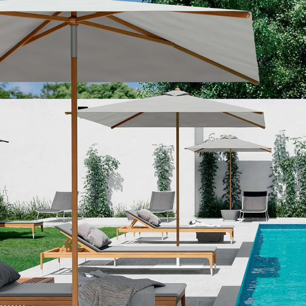 Struttura in legno colore naturale oppure tinta iroko con tela in olefin (a scelta tra ecrù, bianco, antracite, tortora o grigio chiaro) oppure in tempotest parà (varie colorazione disponibili).