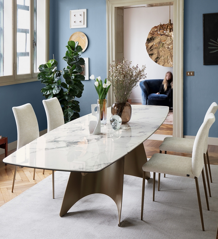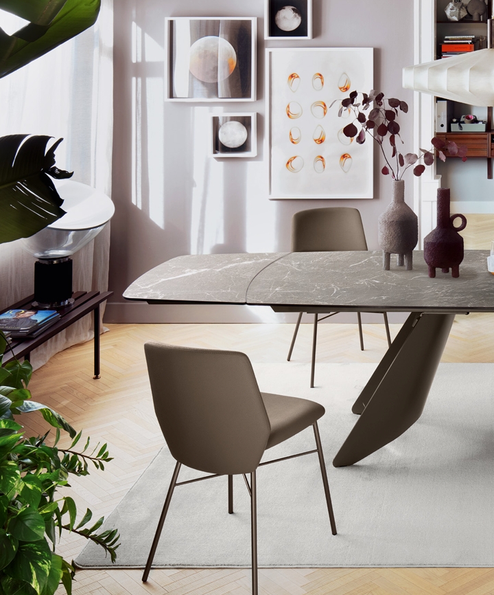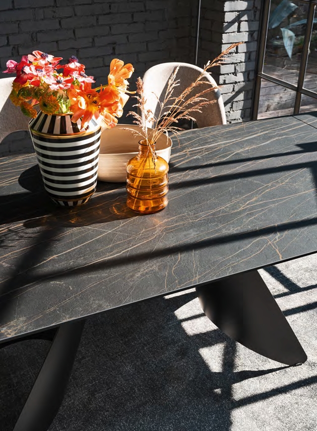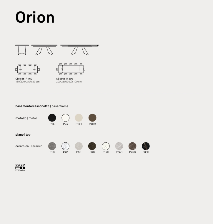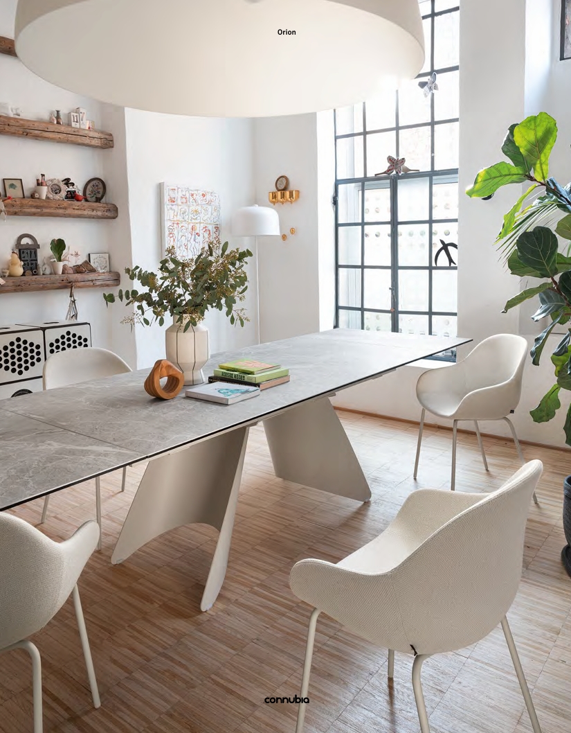 Leggera e quasi sospesa, la base delicatamente curvata in lamiera del tavolo Orion evoca l’immagine di una ballerina sulle punte. Questa struttura elegante è disponibile in due varianti: rotonda e rettangolare, entrambe offerte sia nella versione fissa che allungabile. Grazie alla sua versatilità, il tavolo Orion si adatta perfettamente a qualsiasi esigenza di stile. Inoltre, i piani disponibili in ceramica e nobilitato conferiscono un tocco di raffinatezza e personalizzazione, permettendo di creare un ambiente unico e impeccabile.