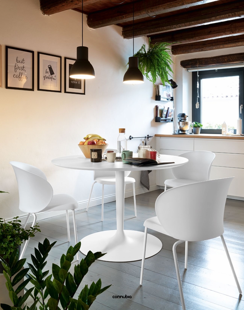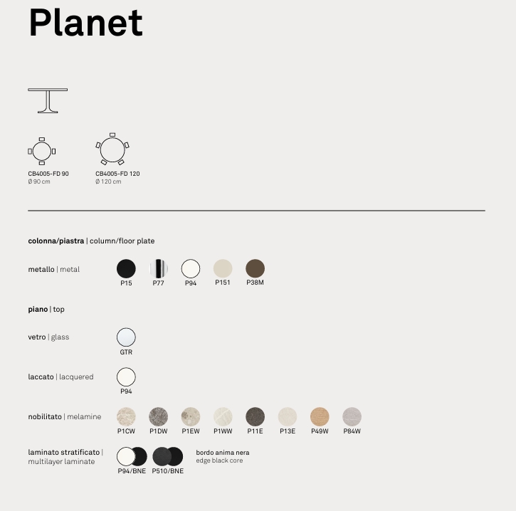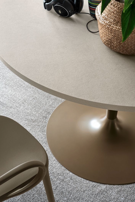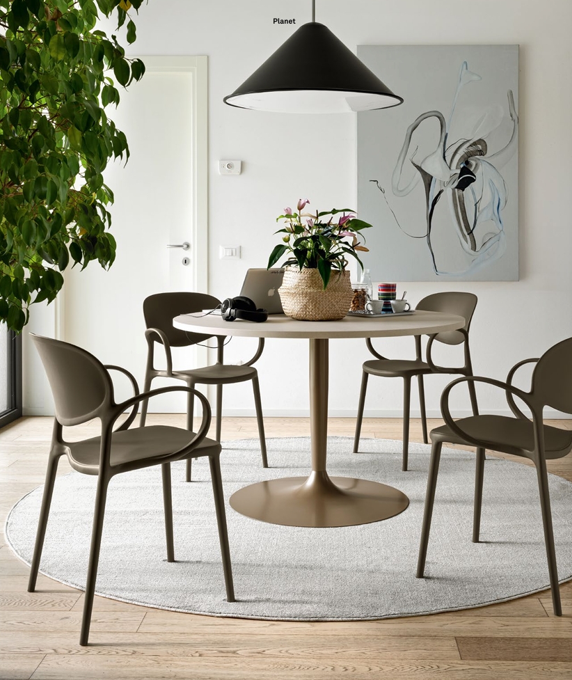 Tavolo modello PLANET con basamento centrale a colonna. Piano rotondo.PLANET è un tavolo con basamento centrale a colonna in metallo. Il piano di forma rotonda è disponibile in vetro temprato oppure in legno. La comodità è garantita per tutti i commensali… anche quando sono in numero dispari!PLANET è il tavolo moderno ed elegante perfetto per la cucina e l’ambiente dining.
