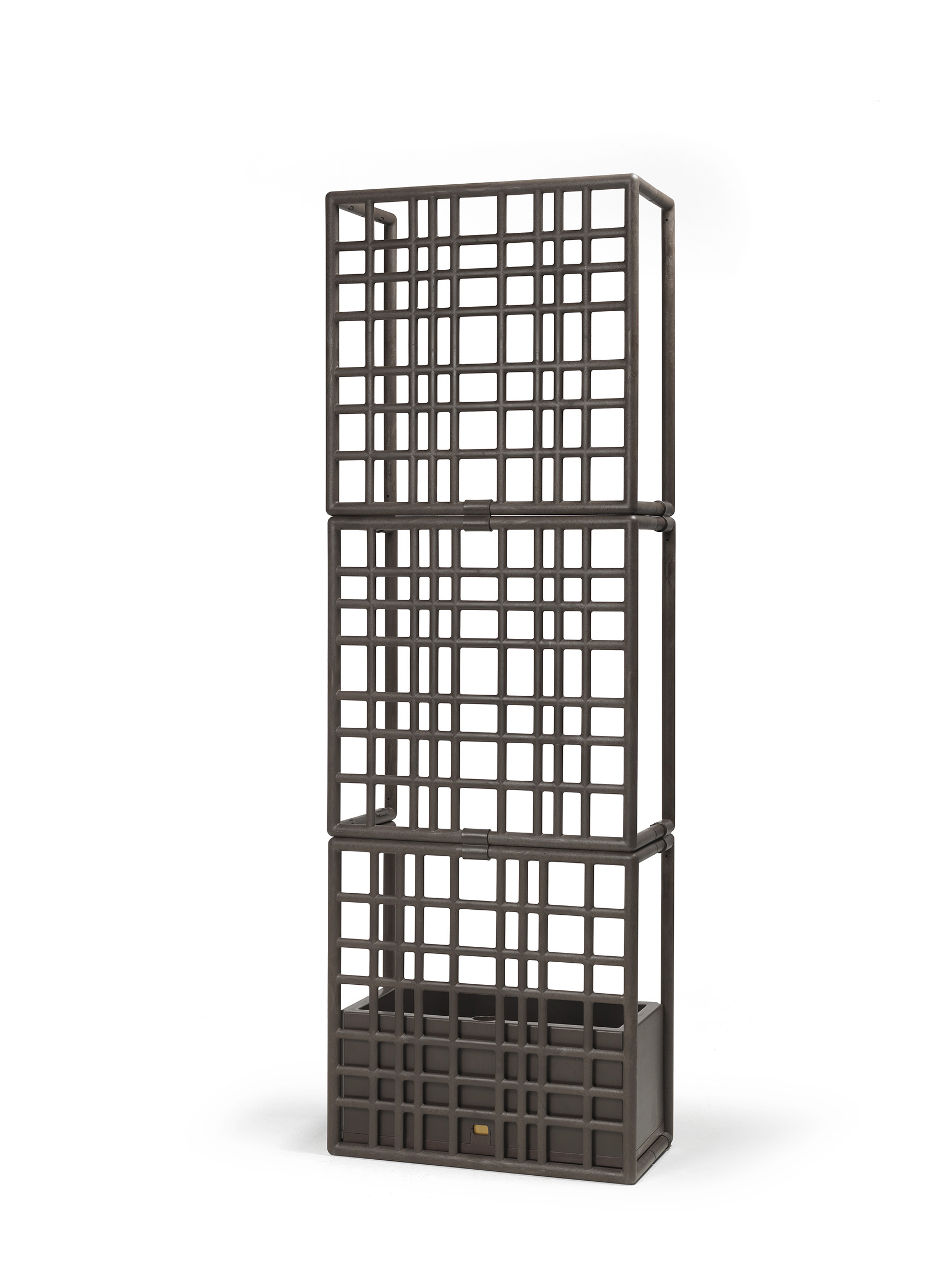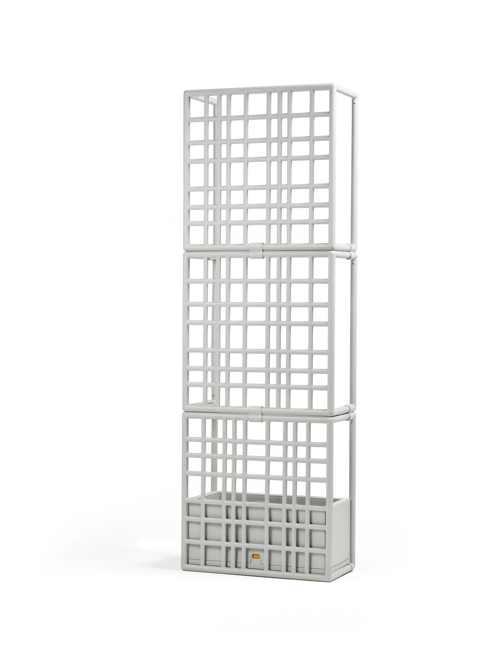 Divisorio modulare autoportante da esterno configurabile a piacere, ideale per dividere gli spazi all’aperto. Costituito da 3 elementi grigliati facilmente agganciabili fra loro senza l’uso di viti e di vaso contenitore per piante autoirrigante. I moduli possono essere impilati in verticale per un’altezza massima di 3 elementi. Per garantire la stabilità del prodotto il vaso deve essere riempito con una zavorra di almeno 30 kg. Materiale: polipropilene fiberglass rigenerato trattato anti-UV e colorato in massa. Finitura opaca. Resina riciclabile.