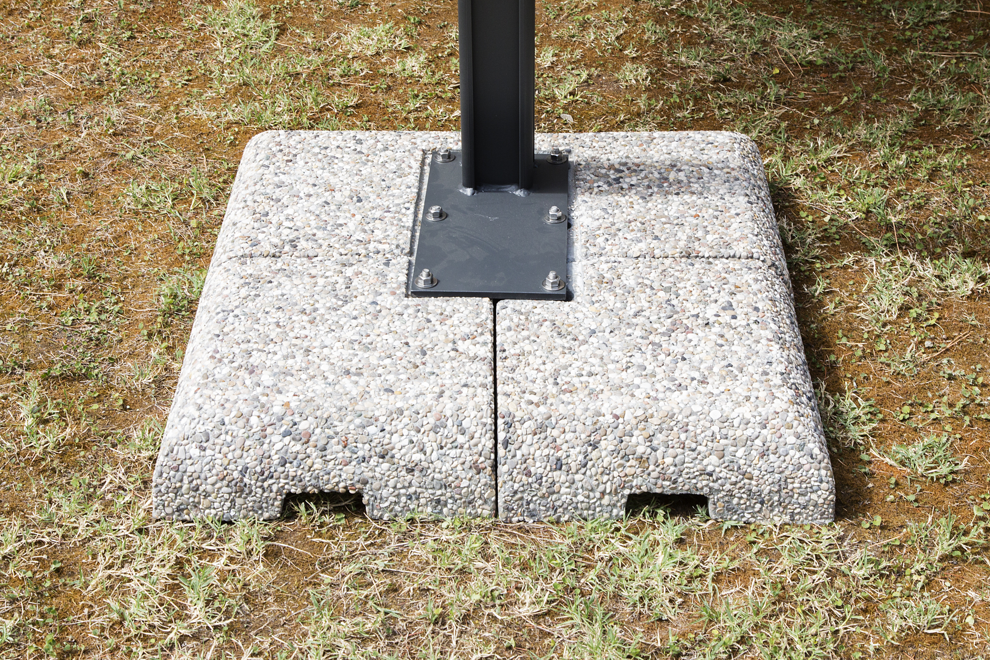 Apertura con arganello di nostra produzione (intercambiabile) con cavo diametro mm 3 e maniglia estraibile, tutto in acciaio inox. Basamento in graniglia composto da quattro blocchi da 40 kg cad. (totale 160 kg)
