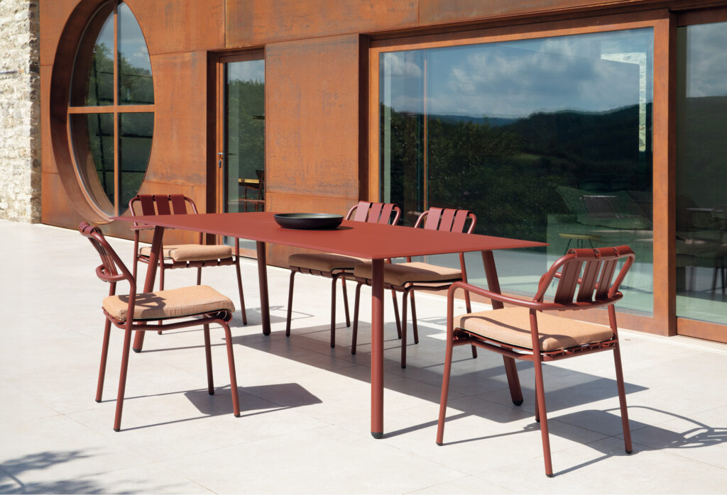 Tavolo Verdea 220×100 in alluminio verniciato.