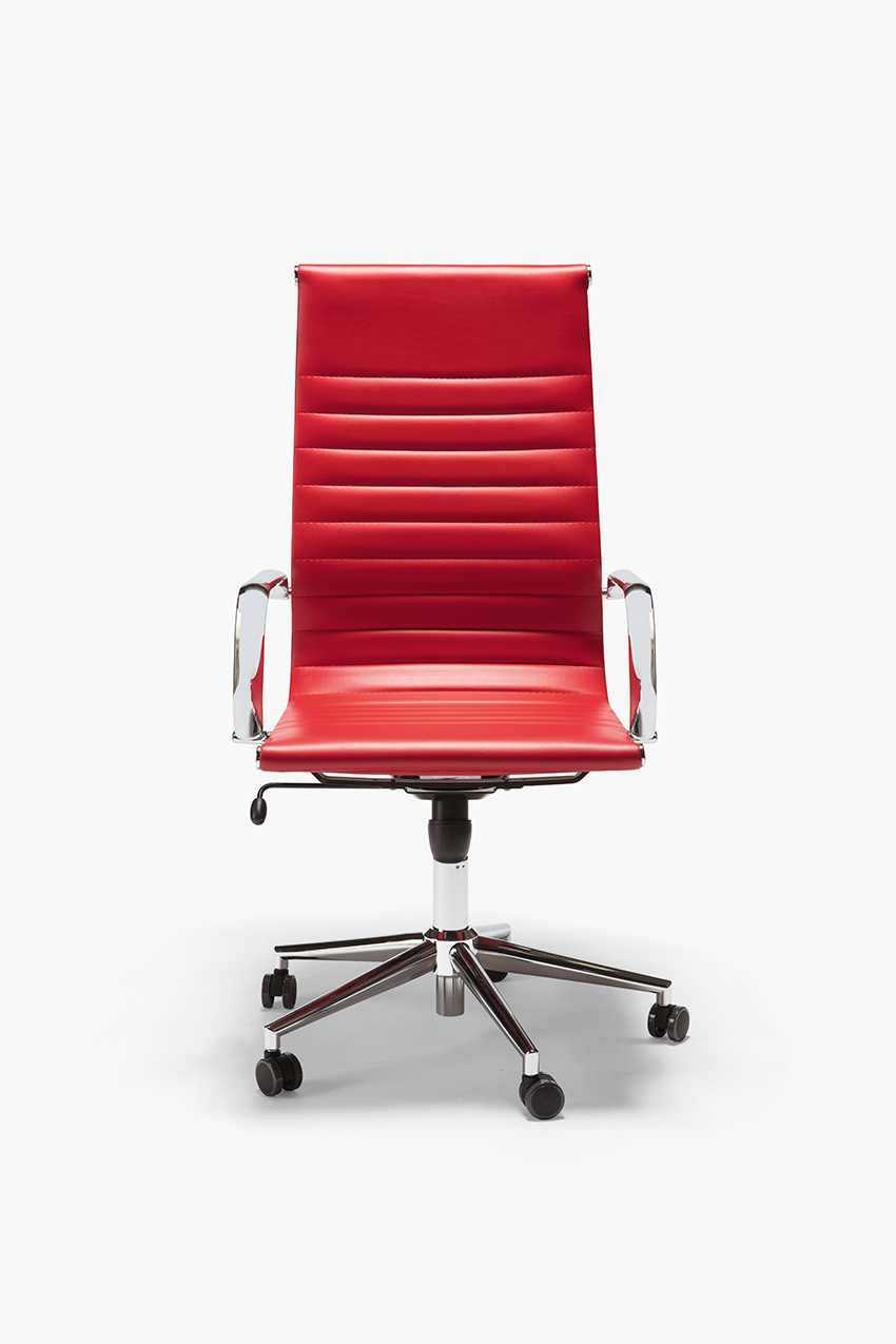 Una seduta direzionale che cambia look e anima a seconda della versione: prestigiosa con imbottitura rivestita in finta pelle, dinamica con schienale e seduta in rete nera o bianca. Disponibile anche in versione certificata.